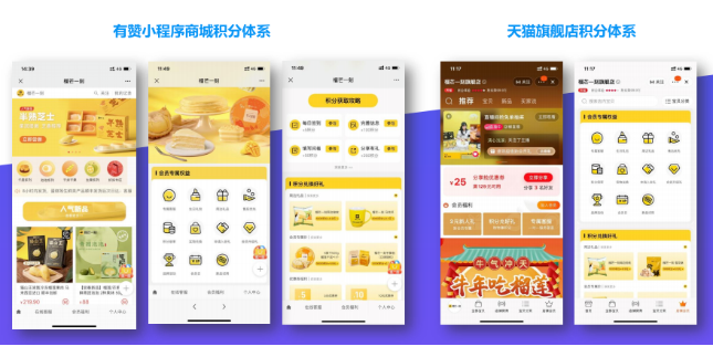 作为高客单、高毛利、具有话题性的网红产品,各个渠道均取得了远高于行业平均水平的投放效率,收入长期保持榴莲类糕点的线上第一名。 多渠道布局下的全域营销让榴芒一刻快速获得了增量和转化,但随之而来却是多平台之间的会员分散,无法形成统一的运营管理,降低了用户的服务体验,影响了品牌的用户增长。 为此,为了给用户提供极致的服务体验,带来更多的增量,榴芒一刻通过合作服务商慧博科技所提供的“云千载全渠道数据中台”解决方案进行了品牌各平台数据的打通整合,实现了会员数据集中化的管理,为品牌搭建了完整全域会员运营增长体系。 根据该客户的需求,通过慧博多渠道整合能力,打通榴芒一刻天猫、有赞平台会员积分体系。会员无论在天猫还是微信消费获得的积分及等级权益保持统一,统一的品牌积分系统装修风格,给会员完整的会员体验及服务。将数据沉淀至云千载全渠道数据中台,再以壁垒SCRM(私域运营管理平台)将平台流量引入到品牌企业微信,建立私域流量池,实现了数字化赋能私域、私域促进转化复购的私域运营体系。