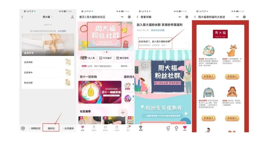 周大福的社群主要用以对品牌进行培养教育,扩大受众群体,增长顾客黏性,让用户更加走进品牌。