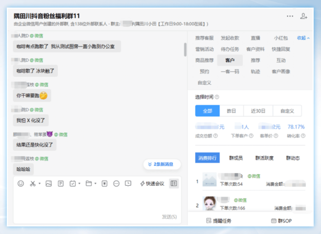 那作为产品提供端的品牌的我们,要给他提供什么产品,用户的兴趣点是什么,我们呈现的内容是否满足用户想要的?下单客户和未下单的客户分别在考虑什么,有购买行为的用户之后的时间段,我们又要如何提供服务。我们配的SOP,或者聊天话术,让客户会不会觉得就是一个无情机器人,随后就退群了。