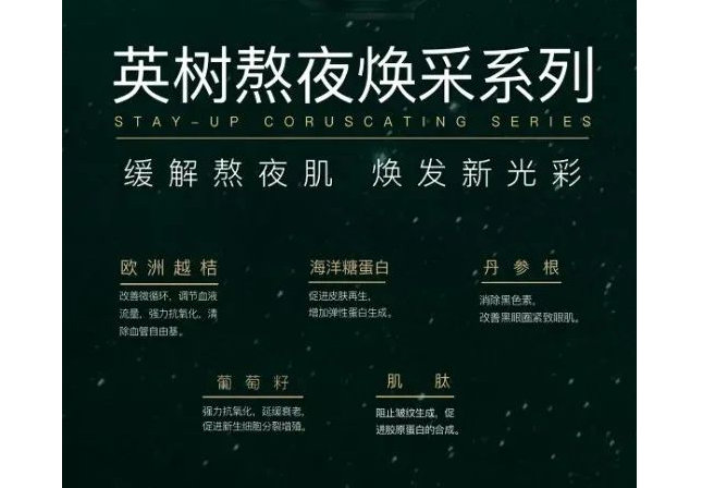 用户既是营销的起点,也是营销的终点,既是品牌的使用者和接受者,更是品牌的拥有者、传播者、分享者。用户在品牌价值创造的各个环节都扮演着重要角色,这意味着深度理解用户,成为众多品牌需要完成的首要命题。 从英树开创“阶段式食疗护肤理念”,推出涵盖从面部到身体全方位的产品系列,再到布局英树品牌、英树生活、英树实体店,都是其对消费者不断精细化洞察的结果。 比如,基于消费者熬夜痛点所研发的“熬夜七步曲”的熬夜幻采系列产品,五大抗老成分,帮助肌肤加速修复。