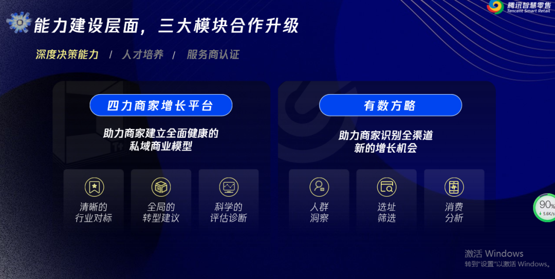 通过结合腾讯生态内零售品牌的私域数据洞察分析,帮助品牌更好的了解行业私域发展走向,并结合平台全域营销支持能力,从深度决策能力、人才培养、服务商认证三个方面进行了合作升级,全面助力商家实现全域经营。