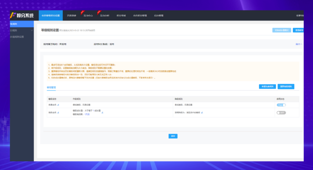 此次,基于官方对目前的会员等级成长表达进行强化及等级规则优化升级的计划,慧博集客CRM接入【天猫成长值模式】,通过为客户提供一站式解决方案,支持淘宝会员通单店使用成长值模式,承接淘系会员通新模式,助力商家提升会员资产及等级归属感。