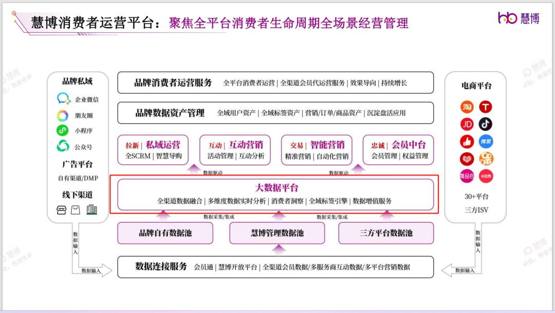 作为全域消费者数字化运营服务商,慧博科技十年来服务超30万家品牌客户,在服务过程中,始终坚持实时聚焦市场消费趋势变化,不断适应新变化,创新思维,实时调整产品+服务策略,助力商家及时优化资源配置效率,以更精准的数据驱动业务来响应不断变化的市场,建立和完善好数字化战略和营销战略双轮驱动发展机制,破局突围度过每一个周期。