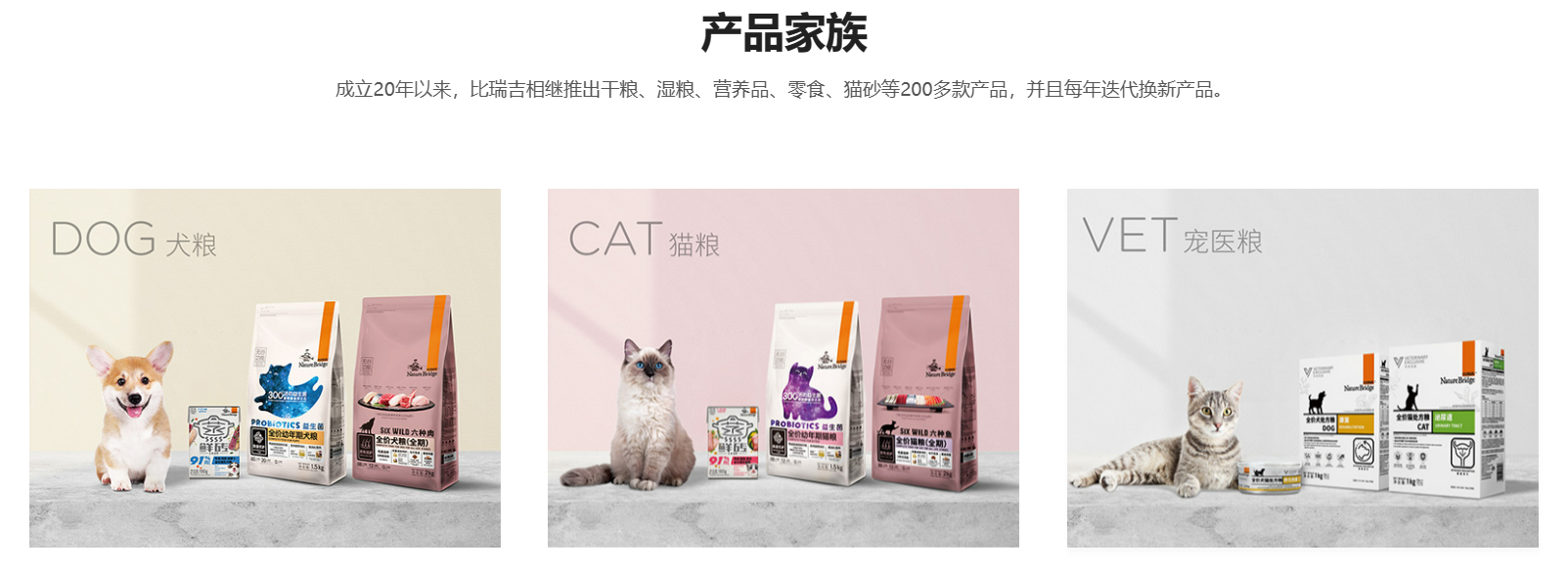 比瑞吉是上海比瑞吉宠物用品股份有限公司旗下的宠物食品品牌,创立于2002年,从事全系列猫狗粮的研发、生产和销售,其产品销量和品质在行业内均名列前茅。旗下拥有比瑞吉、开饭乐、诺瑞和灵萃等多个知名品牌。