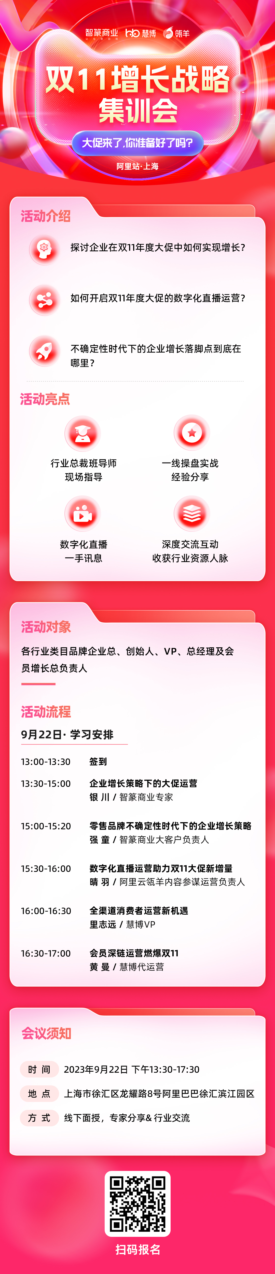 9月22日,“阿里云&淘教&慧博•2023双11增长战略集训会”在上海等你来!