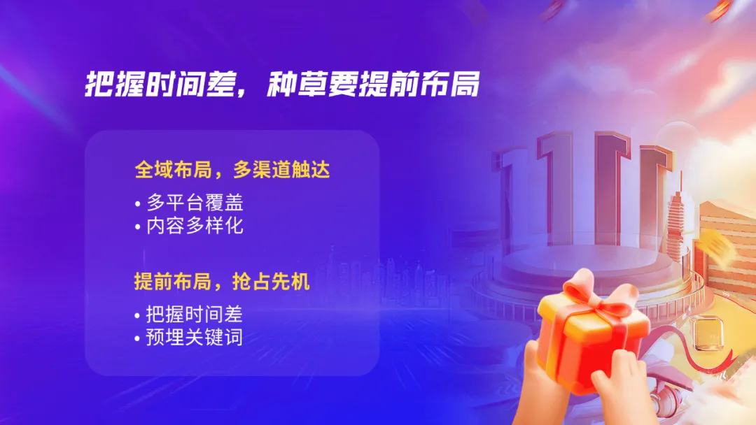 • 从过往经典案例出发:详解双十一如何规划全局精准运营策略,让您汲取成功经验,避免走弯路。
