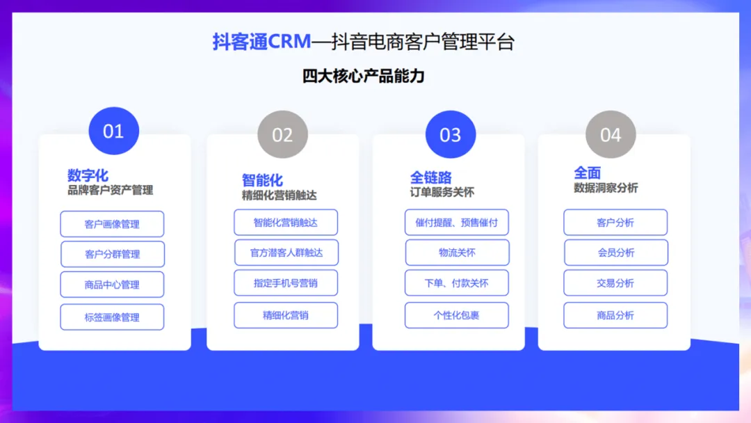 正是在这样的背景下,作为抖音官方认证的会员资产数字化运营服务商,慧博科技自研开发了“集客CRM-抖客通”产品,为品牌客户在抖音电商平台提供一站式会员营销增长与运营管理解决方案。通过精准的用户洞察、个性化的营销触达以及全链路的订单关怀及全域会员通等,助力品牌商家在双11期间轻松冲刺亿级销量,成为了抖音电商战场上的一把利器。