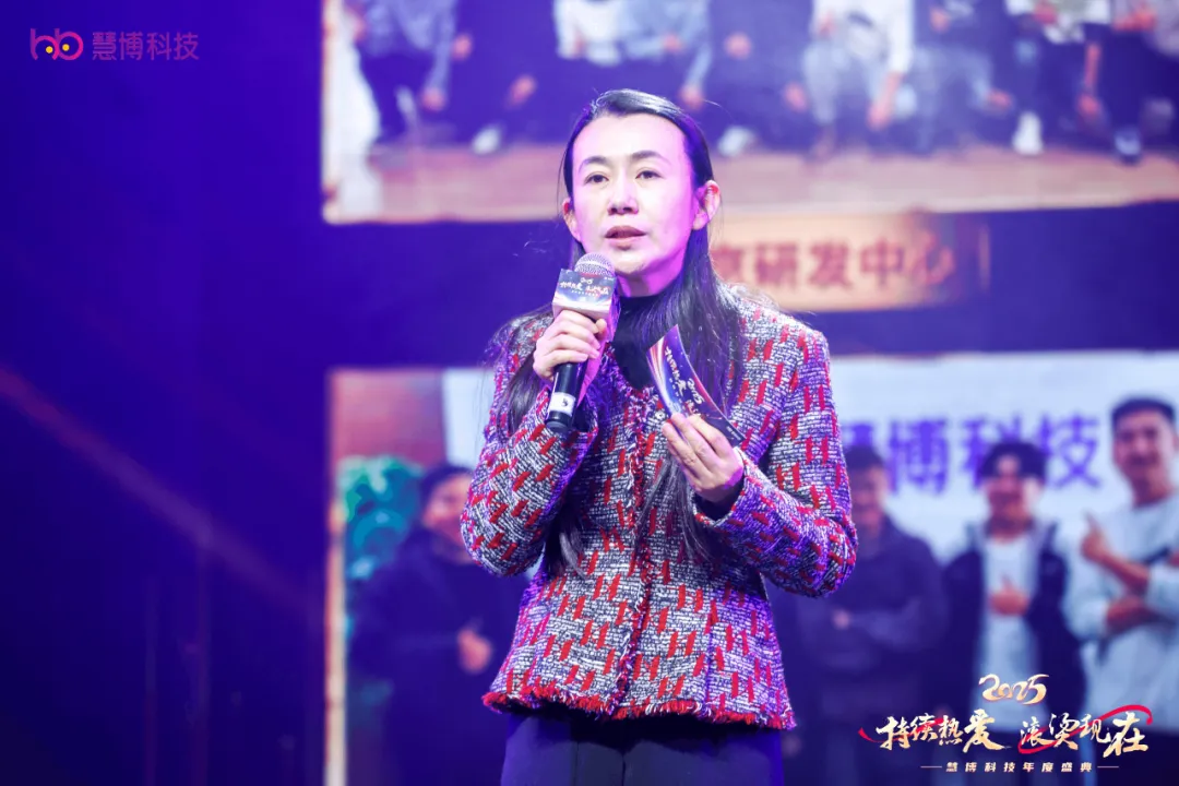 本次年会期间,慧博科技董事长赵芳女士分享了她这一年的心路历程。她回顾道:“在过去的一年里,我们共同经历了市场的风云变幻,面对了前所未有的挑战,也抓住了转瞬即逝的机遇。我们见证了公司的稳步成长,产品技术的持续创新突破,以及市场份额的稳步扩大。这一切成绩的背后,都离不开每一位慧博人的辛勤付出和无私奉献,感谢每一位慧博人的真挚付出。