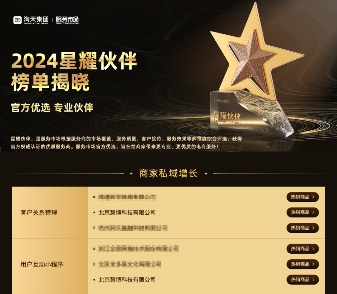 官方认证再升级!慧博科技「集客CRM+集客积分」双星闪耀,携手荣登“淘天2024星耀伙伴” TOP3 热销榜