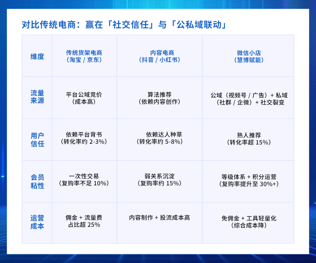 2、对比传统电商:微信小店赢在「社交信任」与「公私域联动」