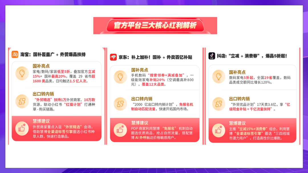 面对“国补 + 平台补贴 + 品牌满减” 的复杂规则,慧博科技推出《国补、平台补、多重补贴策略618作战长图》: