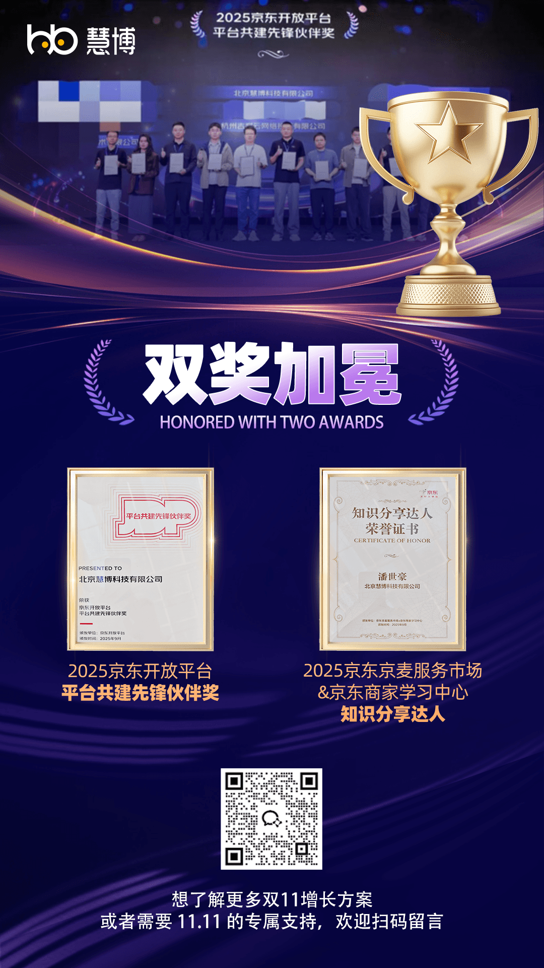 而慧博科技能拿下这两个奖项,核心就在于我们的服务方向和京东同频共振。针对今年11.11 大促,慧博已经备好 “全套解法”: